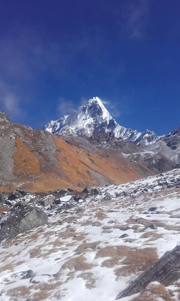 The trek usually starts from Pokhara. From Pokhara, take a jeep or bus to Kimche or Ghandruk, and then begin your trek.